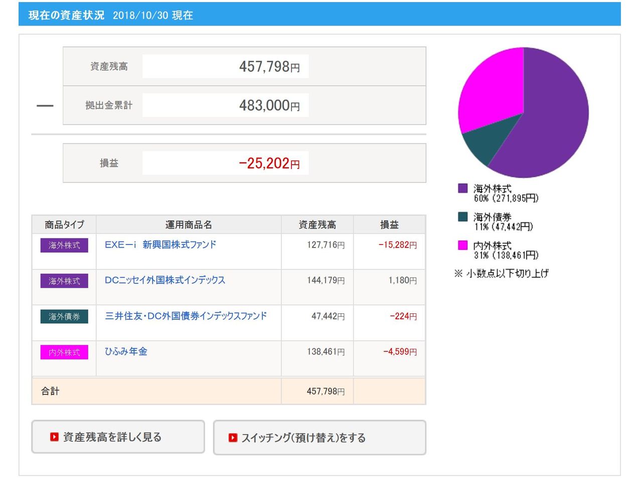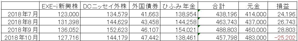 2018年10月度のideco口座の残高は、下表のとおりとなりました。
