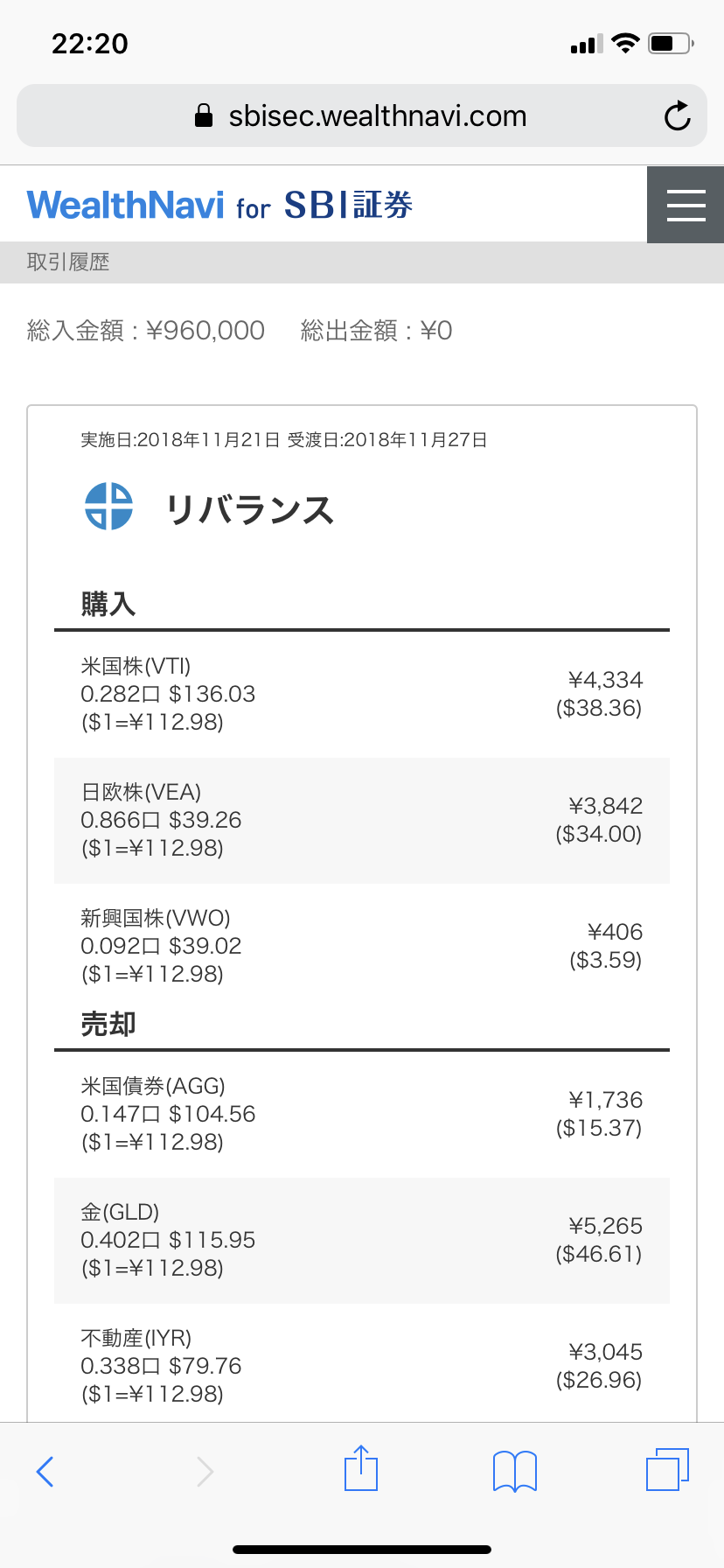 金額を見るとリバランスするほど、比率がずれてたのかなあ?とも思いますが、1年半近くウェルスナビに投資してきて、初めてのリバランスだったので記念(?)にあげておきます。