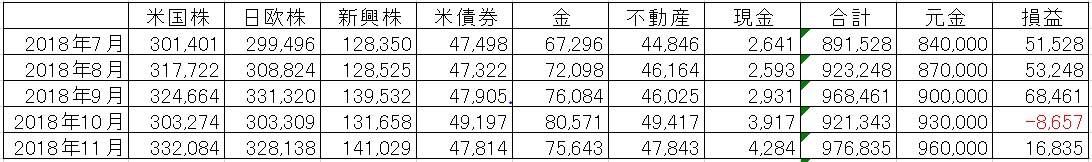 株だけでなく、債券や金、不動産も含んだポートフォリオになっているため、値動きが緩やかな気がします。