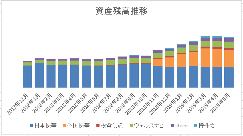 5月は元本追加があったものの、運用成績が大幅マイナスだったため、リスク資産残高全体としては前月比マイナスとなりました