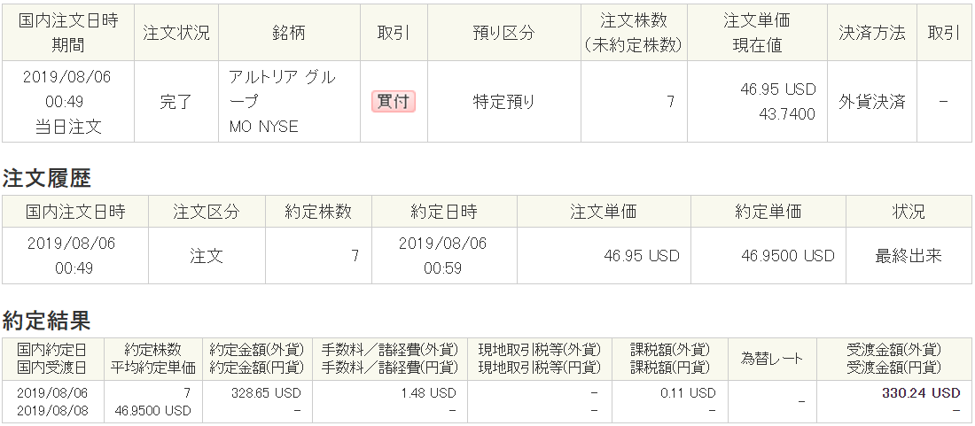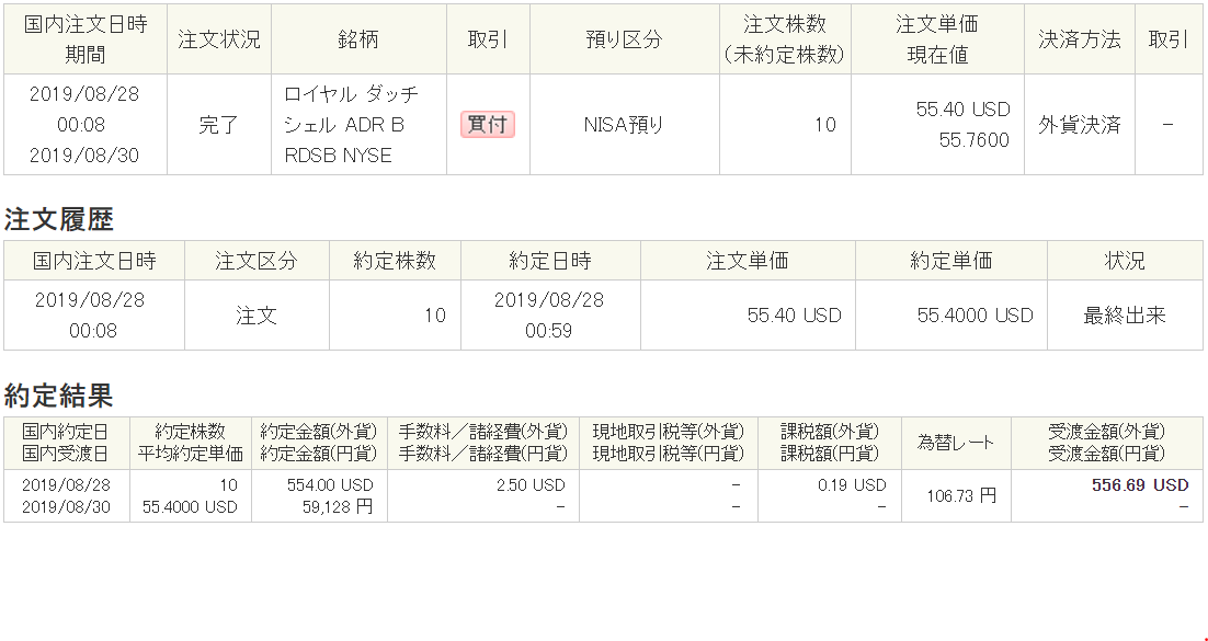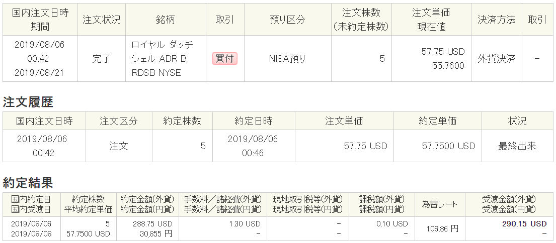 8月はドル転をたくさんし、米国株の最低買付手数料が撤廃されたため、小口での買付をいくつか行いました。