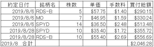8月はRDS-B、MO、SPYDの買い増しを行なっています。