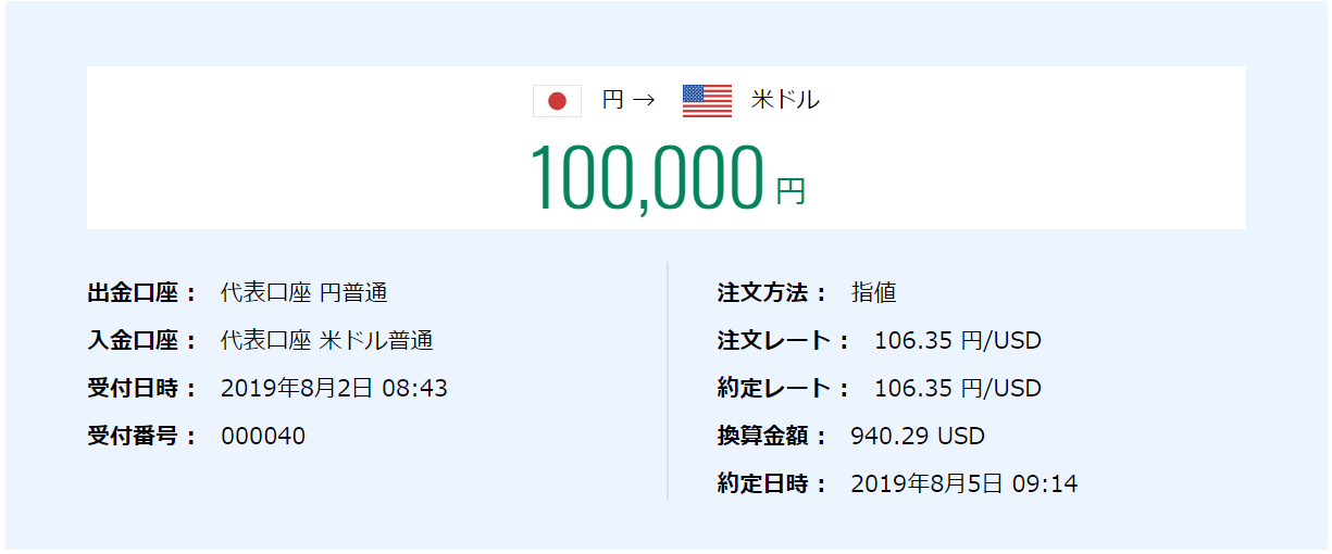 まずはドル転(為替取引)から。