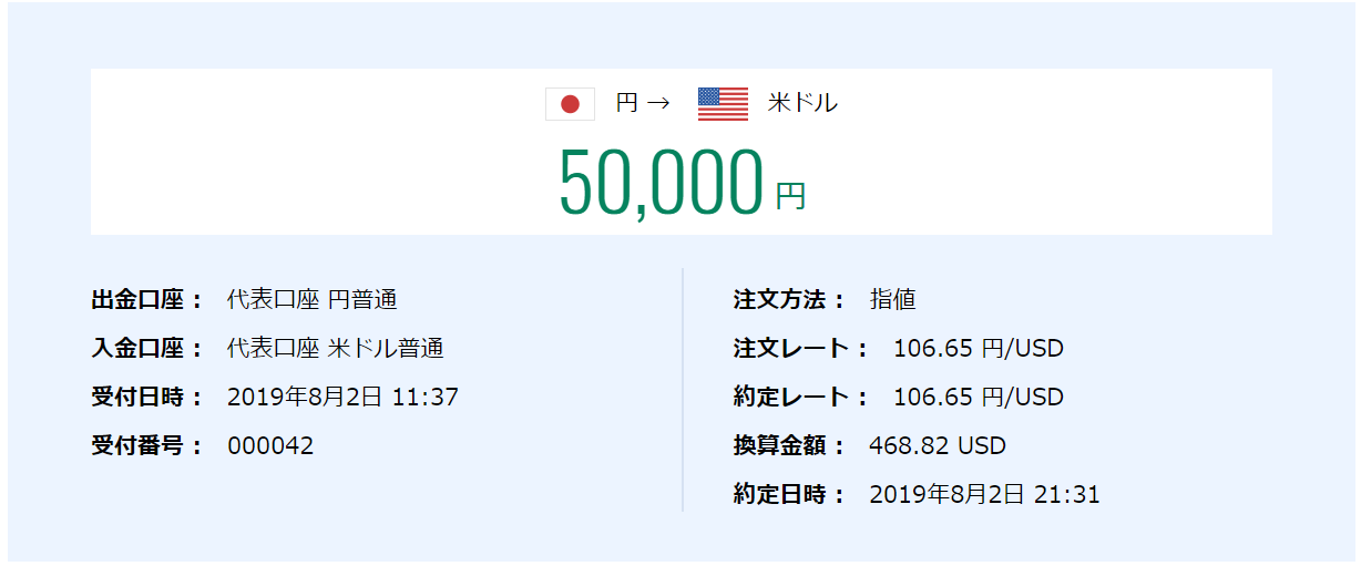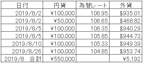 ドル転の仕方は厳密には決めてないのですが、5万が一回あるのは、過去のドル転額の累計が半端だったので端数調整のため一度5万単位で取引しました。